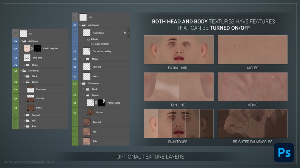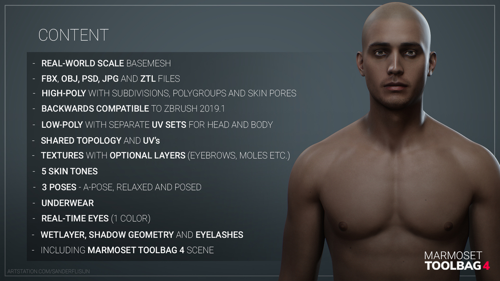 - Ray tracing is supported although a seam between head and body is visible when enabled. This is a known Marmoset bug.